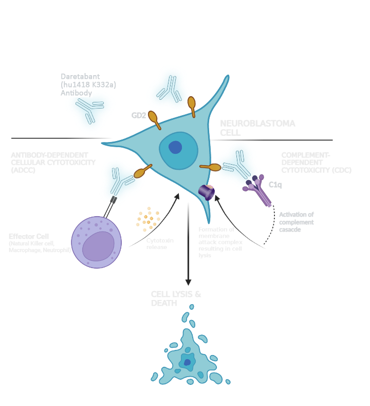 Neuroblastomas abundantly express GD2, a molecule which inhibits recognition of cancer cells by immune cells, allowing the cancer to evade destruction by the body's immune system 5.